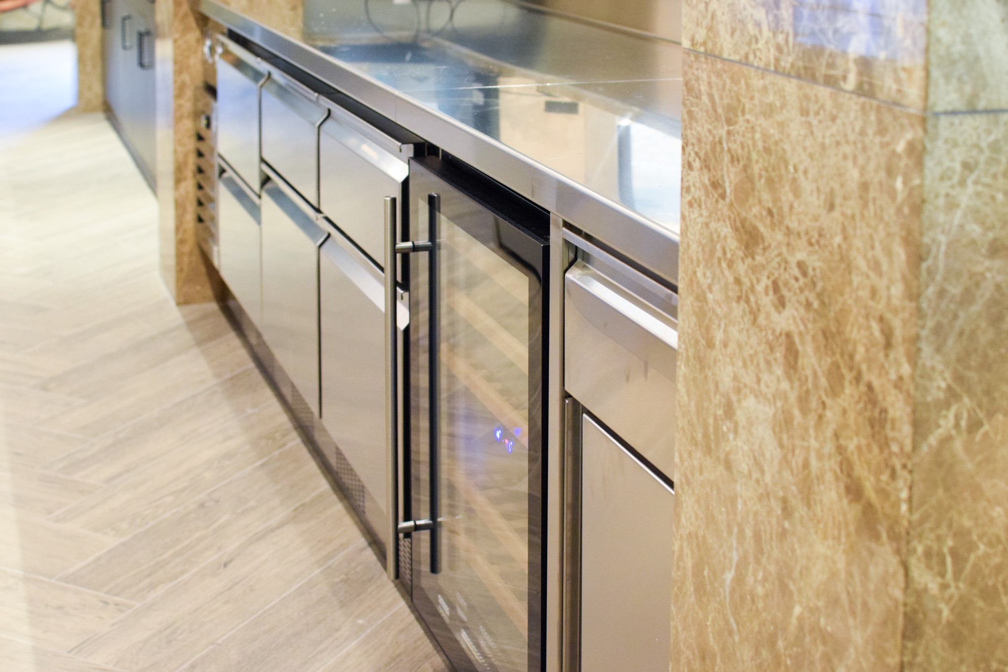 A rozsdamentes acél, hűtőtt bárpultba többek közt az alábbi készülékek kerültek beépítésre: