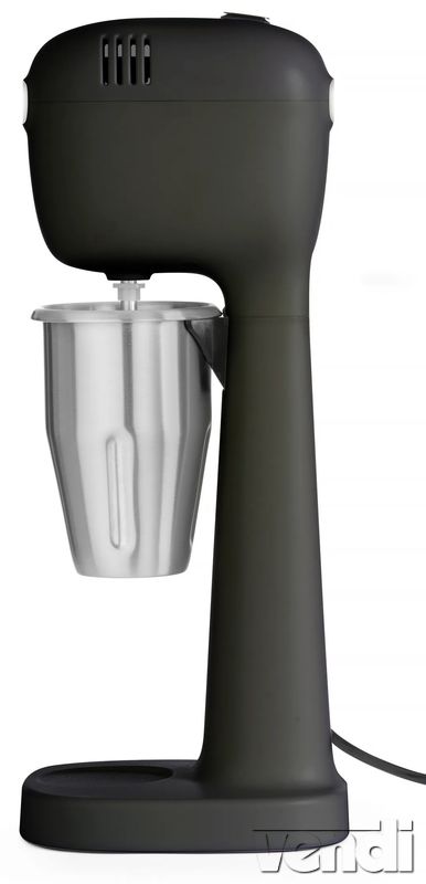 Milkshake tejturmix készítő gép, fekete. Alkalmas tejturmixok, frappék, freddo cappucino készítéséhez. Fekete ABS műanyag burkolattal. Rozsdamentes acél tartállyal, melynek hasznos űrtartalma 5 dl. Tritan műanyag keverőszerszámokkal. Egyszerű vezérléssel a készülék tetején. Két sebességgel: 15000 és 19000 RPM. Biztonsági mikrokapcsolóval, mely csak akkor engedi a készüléked működni, ha a tartály a helyén van. Növelt súlyú talppal az extra stabilitásért és műanyag talpakkal.