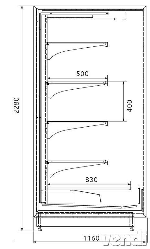 Hűtő faliregál, nyitott kivitelű, aggregátor nélkül, 2980x1160x2280mm "SAPORO R-S/o", oldalpanelek nélkül. Külső telepített aggregátorra köthető kivitel. Ventilációs hűtésű. Festett acél belső burkolat. Hűtött tér mélysége: 830mm. 4db festett acél 500mm széles állítható polccal. LED árumegvilágítással. Éjszakai redőnnyel. Digitális hőfokszabályzóval, belső hőmérővel. Automata leolvasztással, olvadékvíz gyűjtővel. Állítható lábak. Műanyag oldalpanel üvegablakkal. Hűtőközeg: R290. +4/+10 °C hűtési hőmérséklet (25°C körny.hőm. és 60% relatív páratartalom esetén). A hűtőregál színe választható: fehér, szürke, fekete, barna, sárga, narancs, zöld, kék, piros, bordó. Az egységár oldalpanelek nélkül értendő, mely külön rendelhető! A telepített aggregátoros hűtőberendezések esetében a hűtőbútor test tartalmazza az elpárologtatót, hőfokszabályzót és az adagoló szelepet. A megrendelő feladata a berendezés beszereltetése és beüzemeltetése szakképzett hűtőgép szerelővel. A beüzemelő feladata az adott berendezés és a kapcsolódó aggregátor egység elhelyezésének figyelembevételével az aggregátor méretezése, a hűtőcső vezeték rendszer kiépítése, a megfelelő hűtőgázzal történő feltöltése és a kész rendszer beüzemelése! Áraink a leírt alkatrészek és szolgáltatások költségeit nem tartalmazzák! A megrendelt telepített aggregátoros hűtőberendezés megrendelésekor minden esetben kérdezze munkatársainkat az adott berendezés hűtéstechnikai műszaki szükségleteiről! (Hűtőgáz típusa, aggregátor teljesítménye)