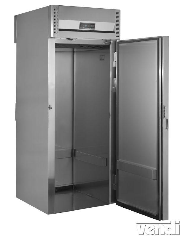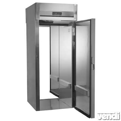 Átkocsizható hűtőszekrény. A tálcaszállító kocsi külön rendelendő. Befogadóképesség: 1db GN2/1 vagy 1db 600x400 mm-es vagy 1-2db GN1/1 tálcás regálkocsi, figyelembe véve a hűtőberendezés belső méretét: 720x906x1810 mm. Bruttó/Nettó űrtartalom: 1089/416 liter. Rozsdamentes acél (AISI 304) külső és belső burkolattal. Átkocsizható kviitel: Előlről és hátulról is nyitható teli ajtóval. Zárható kivitel. Ventilációs hűtéssel. Automatikus leolváasztással. Digitális vezérléssel, állítható hőmérséklet +2/+10 °C között. Energiafogyasztás: 4,6 kWh/24h; Zajszint: 52 dB(A). Hűtőközeg: R290. A hűtési paraméterek +25°C és 60% levegő páratartalom esetén érvényesek!
