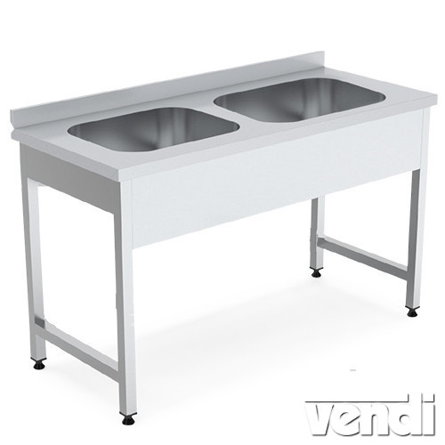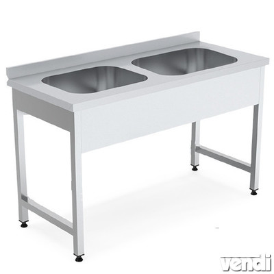 Rozsdamentes mosogató két medencével, 50x50x30cm medenceméret, 120x70x85cm asztalméret. Teljesen rozsdamenetes acél kivitel (CrNi 18/10). 30x30mm-es zártszelvény lábakkal, 100mm-es hátsó felhajtással. A medence szélén egy körbefutó perem található, mely megakadályozza a kifröccsenő víz kifolyását. A mosogató tartozéka egy dugó és túlfolyó, valamint medencénként 1-1 db lefolyó szifon. A terméket ábrázoló kép csak illusztráció!