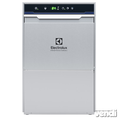 Pohármosogatógép 40x40cm-es kosárral, ürítőpumpával, vegyszeradagolóval, dupla burkolattal, hidegvizes öblítás funkcióval. 30kosár/óra teljesítménnyel. Rozsdamentes acél konstrukció (AISI 304), duplafalú ellensúlyozott ajtóval, rm.acél mosó és öblítőkarokkal. Forróvizes öblítés (80-90°C). Mosogatási ciklus: 55-65°C. Három automata ciklussal: 120/300/120 másodperc, a harmadik ciklus hideg vizes öblítést tartalmaz. Beépített túlnyomásos bojler (5L), mely garantálja az öblítővíz hőmérsékletét és a megfelelő nyomást, nincs szükség külső nyomásfokozó használatára. Erőteljes mosópumpa, forgó alsó, felső mosókarok. Beépített lágyindítás a törékeny eszközök védelme érdekében. Extra program a sörös és borospoharak hidegvizes öblítéséhez. Dupla burkolatú, mélyhúzott, préselt, szivárgásmentes mosótank, lekerekített sarkokkal, mely a lefolyó nyílás felé lejt. Egyszerűen kezelhető vezérlőpanel. Ürítőpumpával, vegyszeradagolóval (külső vegyszerforráshoz), öblítőszeradagolóval felszerelt. Egyfázisú elektromos kábellel és Schuko csatlakozóval szállítva. Alaptartozék tankszűrővel. 1db alaptartozék pohármosogató kosárral szállítva (40x40cm).