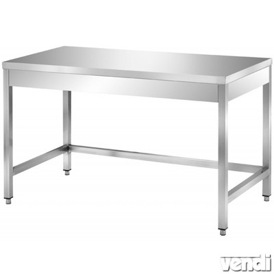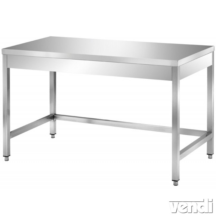 Rozsdamentes munkaasztal, lábösszekötőkkel, lapraszerelt kivitel, mérete 1600x700x850mm. Fedlap és a zártszelvény lábak AISI 201 minőségű rozsdamentes acélból. Kalapprofil merevítéssel megerősített munkalap. 40mm vastag asztallappal, állítható magasságú lábakkal. Lapraszerelt csomagolással szállítjuk, összeszerelése egyszerű, a megrendelő feladata a csomagolásban elhelyezett útmutató alapján. Csomagolása karton, mely lehetővé teszi a gyűjtő szállítmányozóval történő csomagküldést, a megrendelő igénye esetén. Felhasználási terület nagykonyhákban, cukrászatokban, élelmiszeriparban javasolt. Csomagolási méret: 1625*755*125 mm.