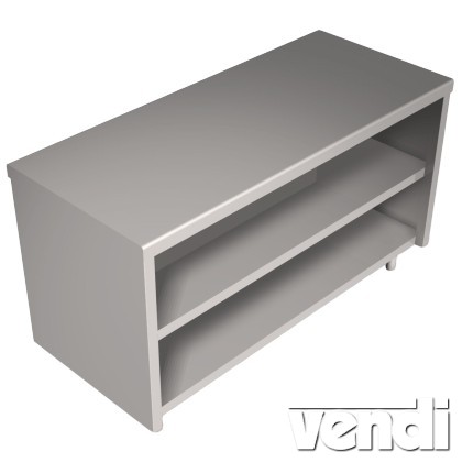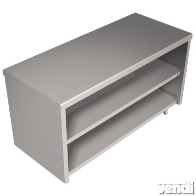 Semleges pult rozsdamentes acélból, közbenső polccal, fedlap vastagság 50mm, alsó polc magassága padlószinttől 120mm, műanyag állítható szintező talpakkal