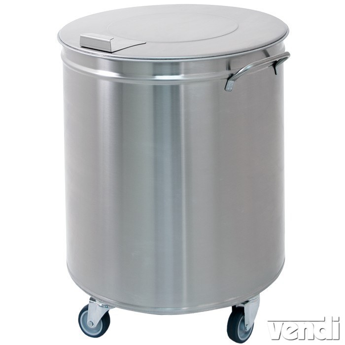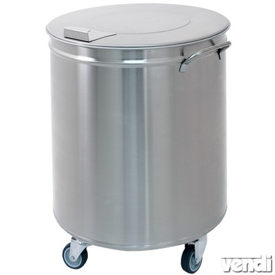 Fedeles nagykonyhai hulladékgyűjtő, rozsdamentes, 90 literes. AISI304 rozsdamentes acél kivitel, szálcsiszolt külső felülettel. Vízhatlan préselt fenék lekerekített élekkel. Kerekekkel felszerelt. Akasztófüles fedél. Származási ország: Olaszország.