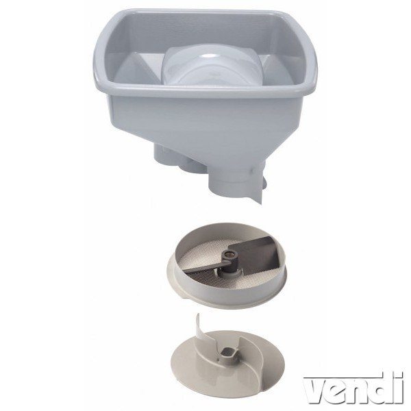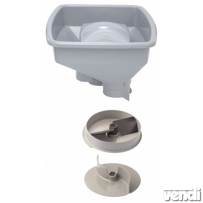 Burgonyapüré készítő szett (O3mm), tölcsérrel, CL50/R502-hez. Tartalma: speciális perforált (O3mm) tárcsa fém paszírozó lapáttal, speciális kibobó tárcsa, adagoló tölcsér.