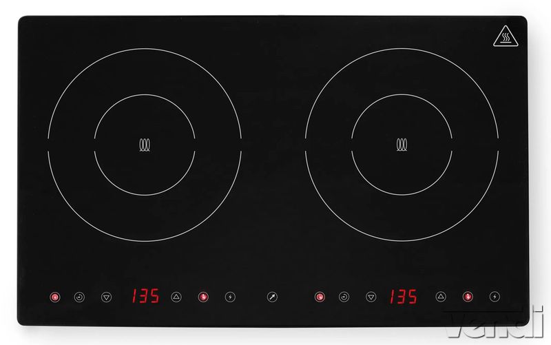 Indukciós főzőlap, kétzónás, digitális vezérléssel, 3500W. Digitális tejlesítmény vagy hőmérséklet, illetve időzítő beállítási lehetőség. 120 és 220 mm közötti átmérőjű főzőedény használatához alkalmas főzőfelülettel. Érintőgombos vezérlés. Csak az indukciós főzésre alkalmas edények használhatóak a készüléken. Bal zóna teljesítménye: 100-1800 W. Jobb zóna teljesítménye: 100-1700 W. "Boost" funkció, mely ideiglenesen megnöveli a bal zóna teljesítményét 2000 W-ra, míg a jobb zóna teljesítményét csökkenti. Állítható hőmérséklet: 35-240°C. Terhelhetőség zónánként: 15 kg. Idözítű funkció: 0-180 perc. A berendezés, vendéglátó egységben történő használatát nem javasoljuk! Nagyobb terhelés esetén válasszon nagykonyhai-főzősori változatú készülékeink közül! Csak étellel feltöltött edényt tegyen a kerámia felületre, mert az üres edény ráhelyezésével és működtetésével a készülék károsodhat! A készülék számára a visszahűtés lehetőségét körültekintő módon biztosítani szükséges a gépkönyvben megfogalmazott módon! Szakszerűtlen használat, vendéglátóiparban történő felhasználás, vagy a túlterhelésre utaló meghibásodás a garancia vesztését vonja maga után!