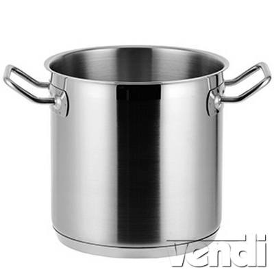 Rozsdamentes fazék fedő nélkül "ECO", 16 literes. Szendvics talppal, hegesztett erős fülekkel, szálcsiszolt felület, használható indukciós, gáz, elektromos és kerámia lapos tűzhelyeken egyaránt, anyaga: AISI304 rm.acél. származási hely: Kína.