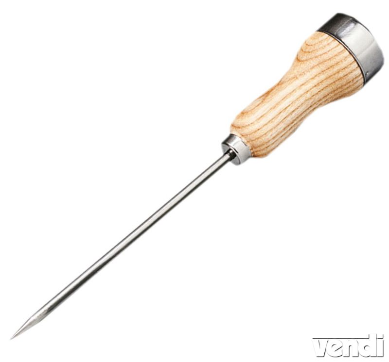 Jégtörő, 24cm-es. Rozsdamentes acélból készült jégtörő, fa nyéllel, jégkockák aprítására használt báreszköz.